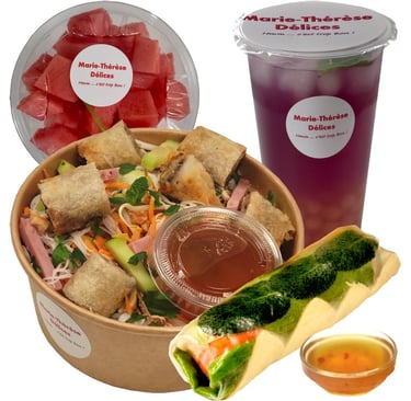 Marie-Thérèse Délices est votre boutique en ligne pour savourer des plats asiatiques de qualité. Composez votre menu avec un plat principal, un dessert et une boisson, livrés directement chez vous.